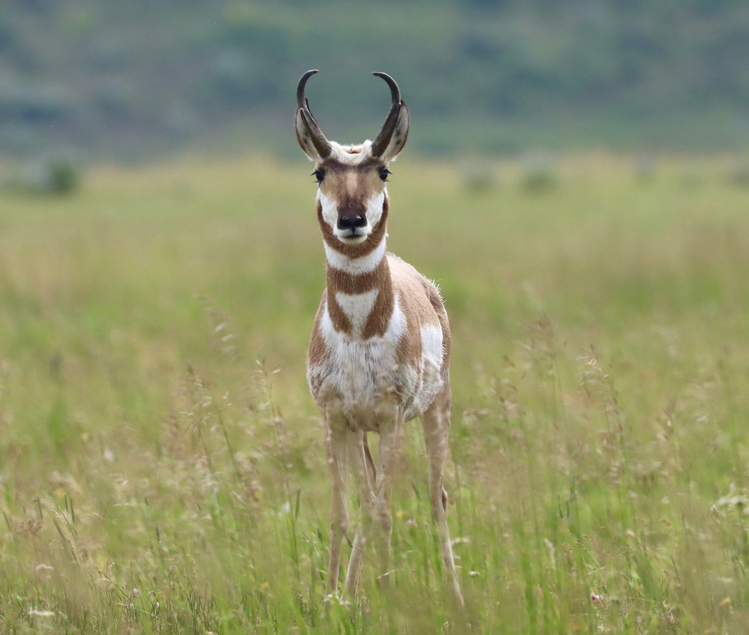 Probably my favorite moment from the sojourn to Yellowstone. This gorgeous Pronghorn Antelope was one of the animals I most wanted to see. As a young boy I ran track & field and I was always enamored with speed...Pronghorns have it in abundance. They are the fastest land animals on the continent. Able to reach speeds of 60mph! This guy however was in no such hurry. He was lying in a huge grassy expanse in the middle of the Lamar Valley, in Yellowstone’s North Eastern most corner. He spotted me long before I was close enough for this photo but instead of standing and running, he just watched me with great curiosity. This…I soon realized was a negotiation...I would literally take 5 steps forward and then two steps back. Forward...wait a few minutes...and then back. I did this dance with him for almost an hour. On more than one occasion, he rose to his feet and considered a Usain Bolt like sprint, but upon seeing me halt and retreat, he would relax and lie back down, all the while still intrigued with my cautious approach. When I was within reach and started clicking away with my camera, he rose again and stared at me with the most beautiful eyes. I wanted that moment to last forever....but after a few amazing moments, he decided it was time to leave. Instead of running off...he merely sauntered away, occasionally looking back at me over his shoulder. It was all the feels!